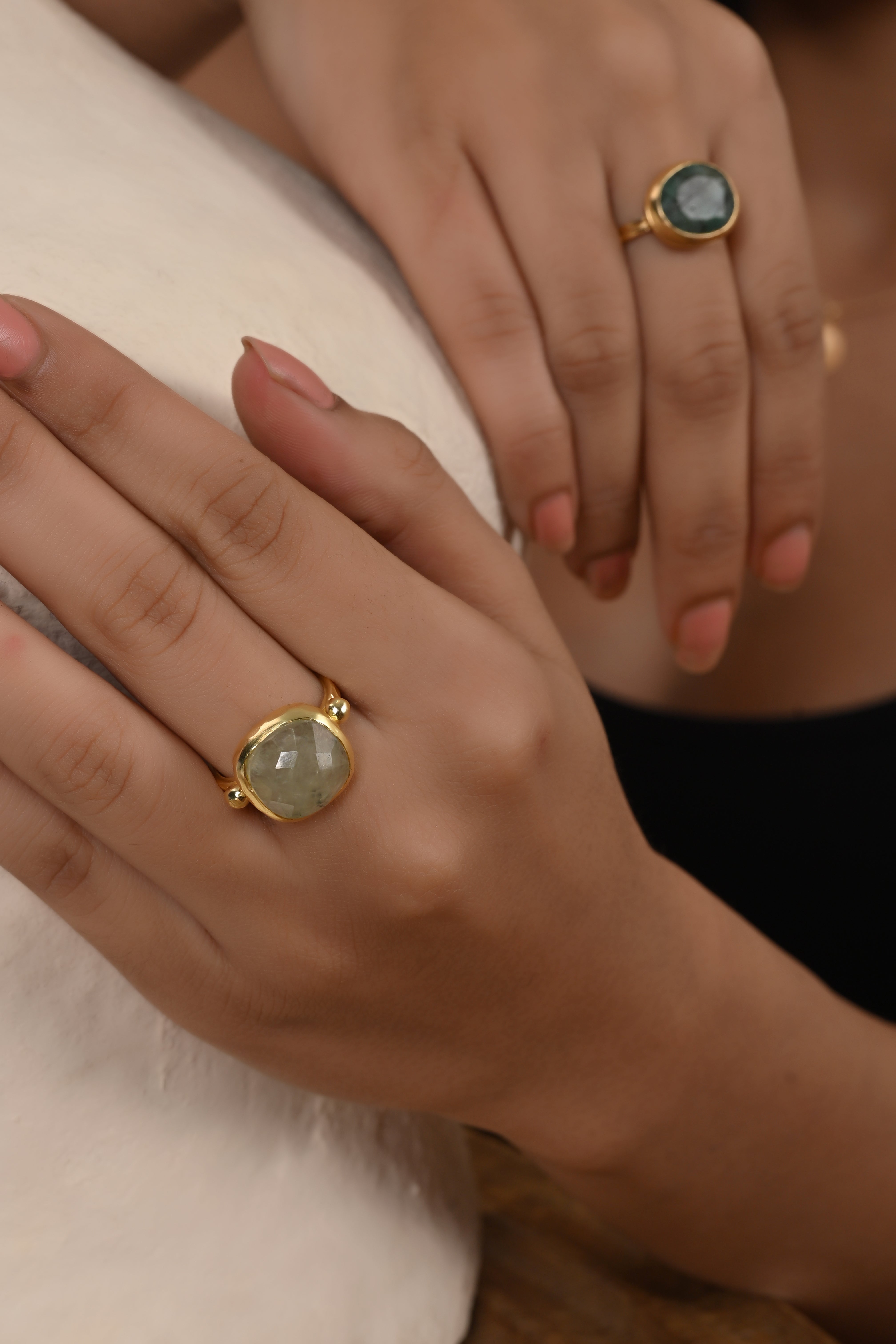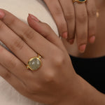 A beautiful Prehnite & Golden rutile gemstone oval shape ring. This beautiful ring size is 6.5, and 8 US with gold plating. It can be good jewelry gifts for her.